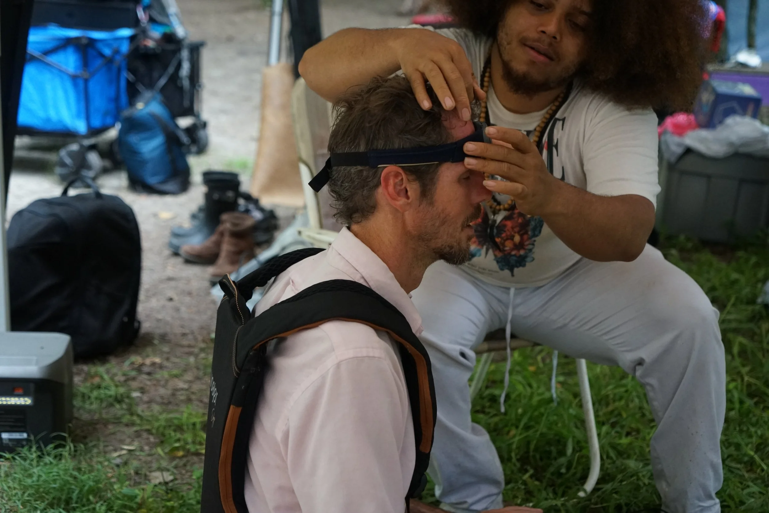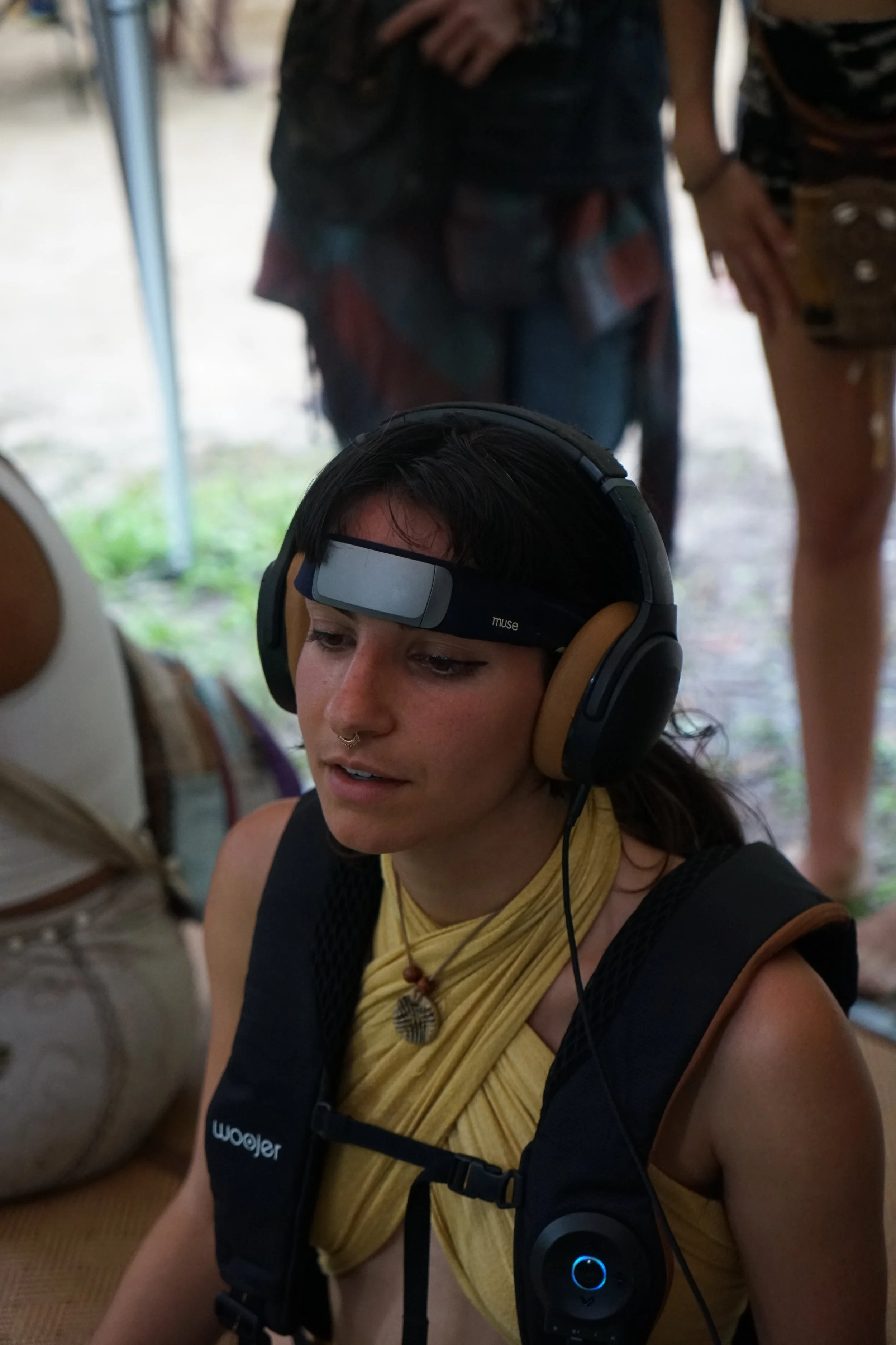 Sense is an immersive, evolving audio-visual installation that transforms brainwave activity into responsive visual art. Participants wear a Muse S EEG headset, haptic vest, and Skullcandy Crusher headphones, immersing themselves in a guided sensory journey. The headphones and vest deliver deep, resonant vibrations, allowing users to feel the sound throughout their bodies, while real-time brainwave data shapes dynamic visuals in response to their mental state.