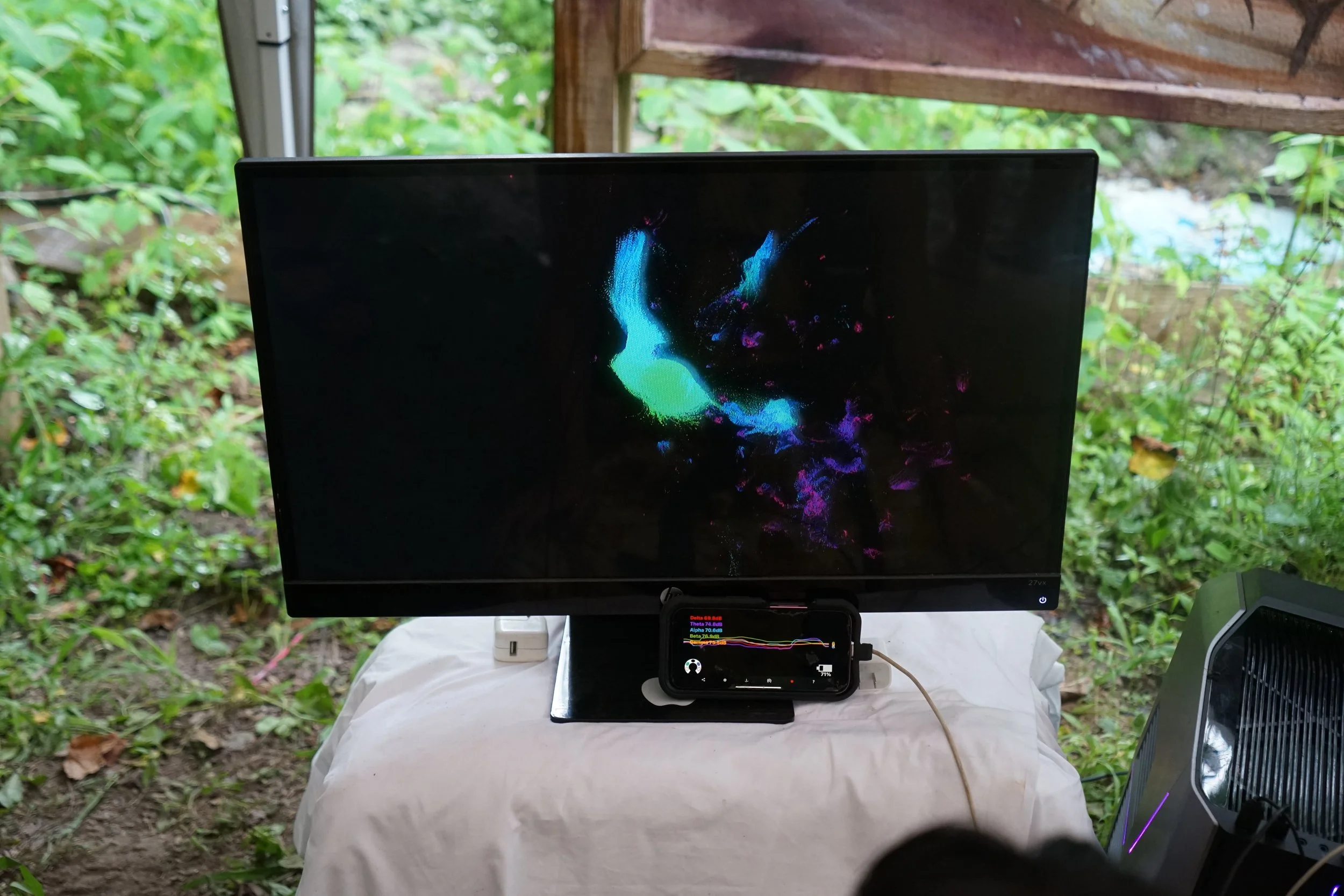 The experience is designed to explore how we perceive and "sense" the world internally. Visuals are generated live using TouchDesigner, which serves as the central platform for integrating EEG data (via Mind Monitor), audio input, and haptic feedback.
